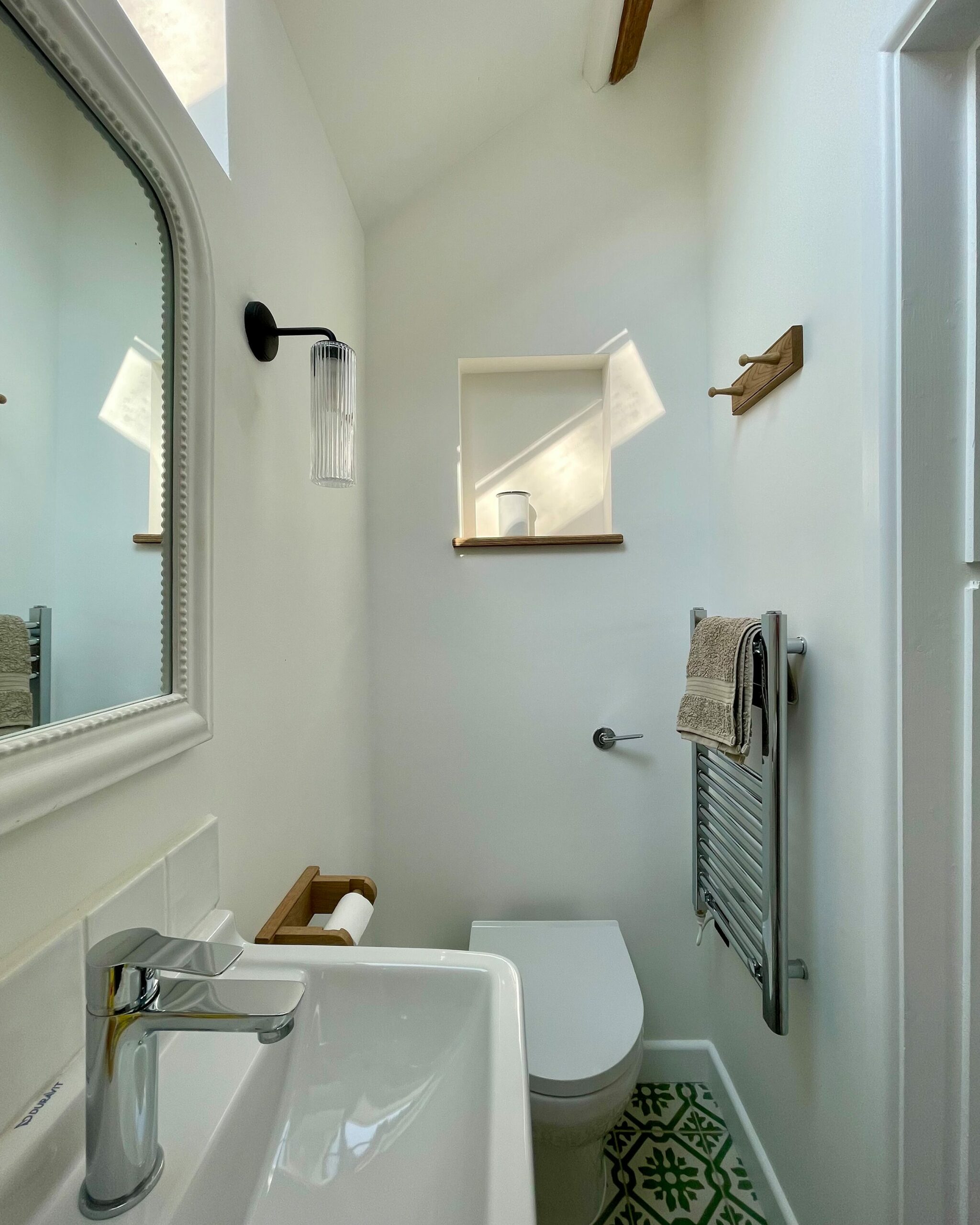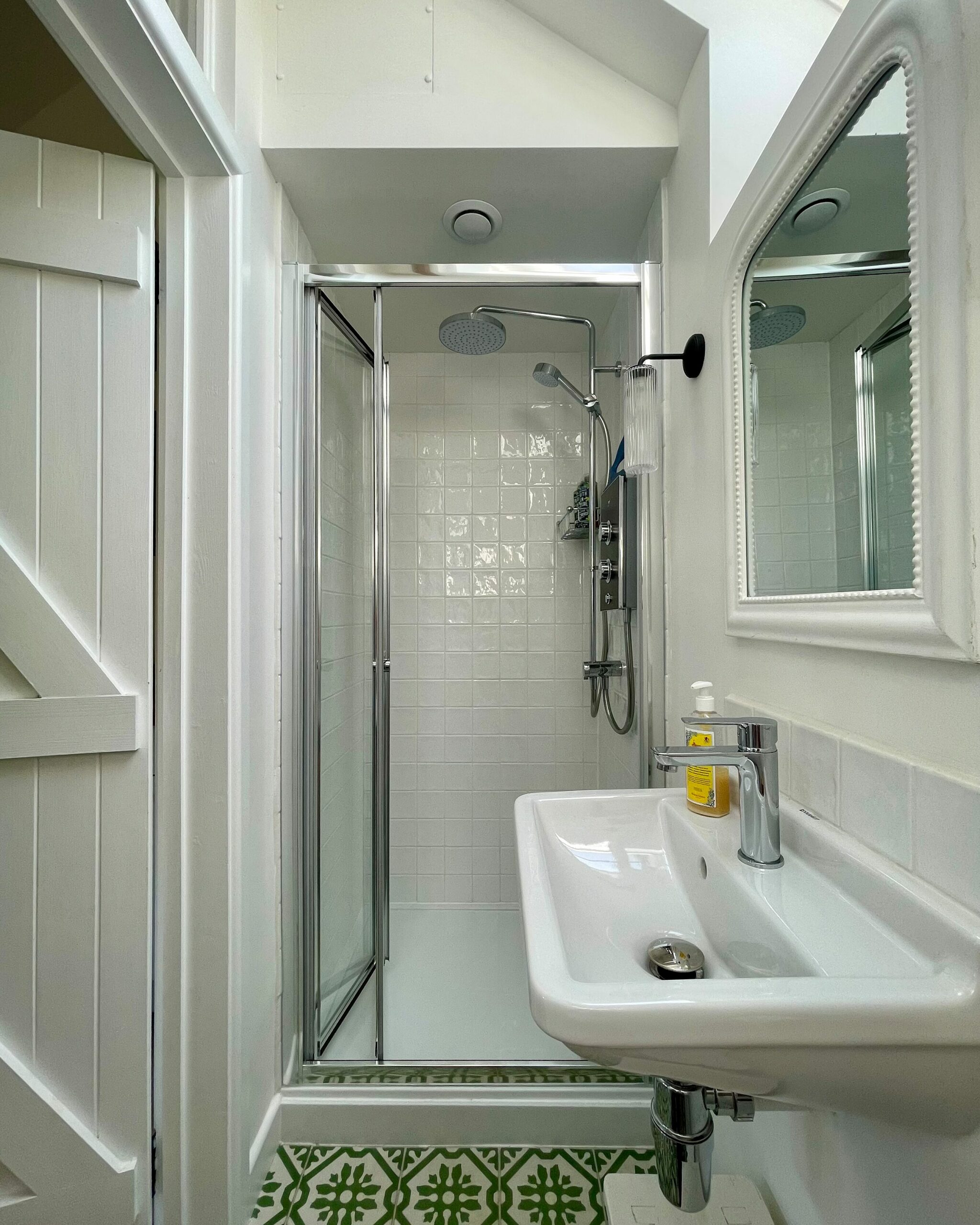 There’s a well equipped kitchen and living space, shower room and double bedroom with views out onto a pretty cottage garden.